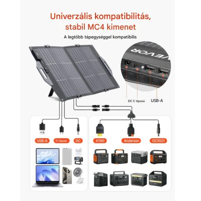 • Csatlakozók: MC4, USB-A (QC3.0), Type-C, DC