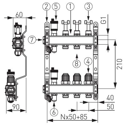 • Osztó-gyűjtő fűtő köreinek száma: 8 fűtési kör