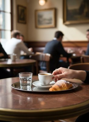 Mérete elegendő egy csésze kávé, egy pohár víz és egy kisebb desszert elhelyezésére. Az ovális forma klasszikus kávéházi hangulatot idéz, miközben praktikus és könnyen kezelhető.