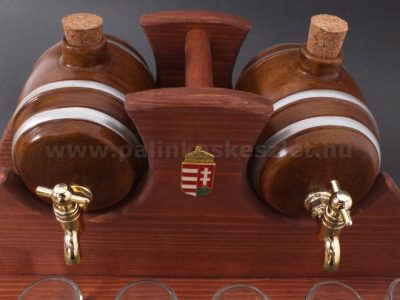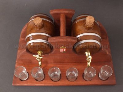 • Pálinkás készlet íves, 2 kerámia hordóval, 6 pohárral - barna