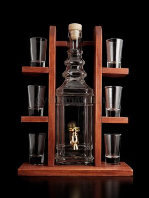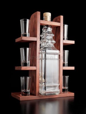 • Pálinkás polc 1 üveg 6 pohárral barna