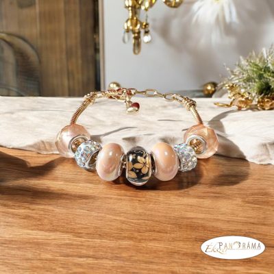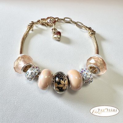 Pandorka divat karkötő - ezüst alapon beige színnel, strasszos gyöngyökkel,közepén egy különleges gyönggyel!