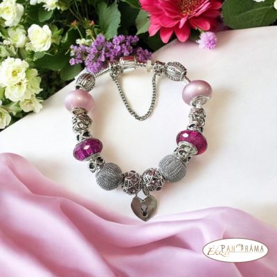 Pandorka karkötő, ezüst színű alapon - pink