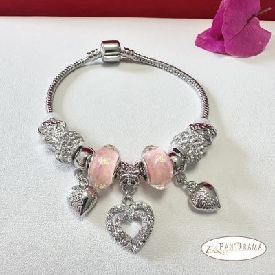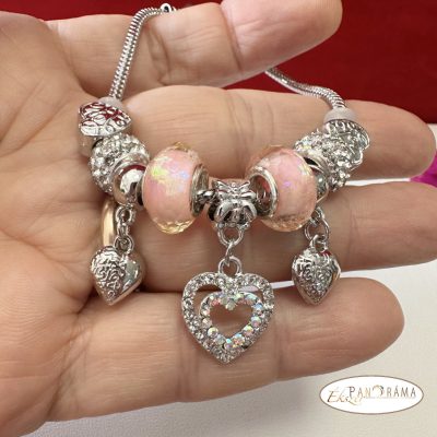 Pandorka divat karkötő - ezüst alapon rose szín dominál