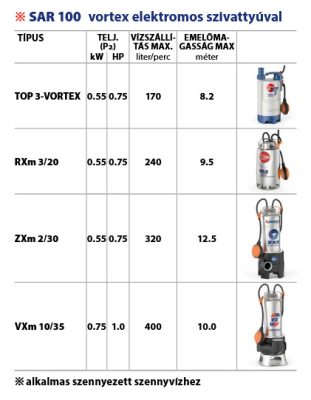 PEDROLLO SAR 100-TOP 3-VORTEX Vízgyűjtő és átemelő állomás