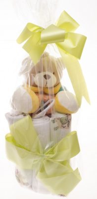 Pelenkatorta: 7db fehér, 2db mintás textil pelenka, harmónika zenélő macival