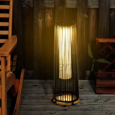 Ez a napelemes kerti lámpa karakteres szövésével mindenkit lenyűgöz, időtlen, természetes rattan megjelenéssel rendelkezik. A robusztus, porszórt acélból készült vázba egy lépcsőzetes hengeres árnyékolót építettek be, amely feltűnő megjelenést és nagy stabilitást biztosít. Teljesen feltöltve nyolc óra üzemidőt nyerhet, miközben a lámpa automatikusan be- és kikapcsol, és napfényben újratöltődik, így nincs szükség hálózati áramra.