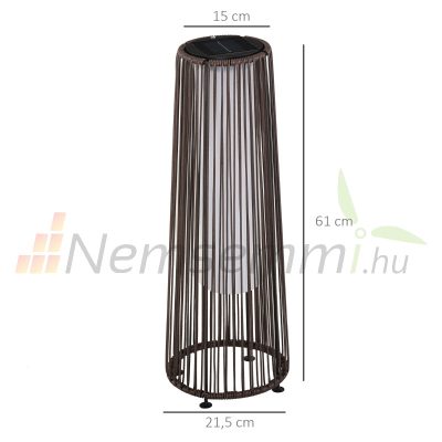 • Polirattan napelemes kerti lámpa 61 cm magas barna kültéri szolár világítás állólámpa 8 órás világítási idővel