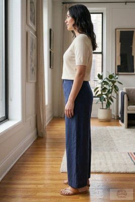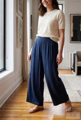 Sokoldalú stílus: Mélykék színe könnyen kombinálható világos felsőkkel, blézerekkel vagy akár egy egyszerű pólóval is.