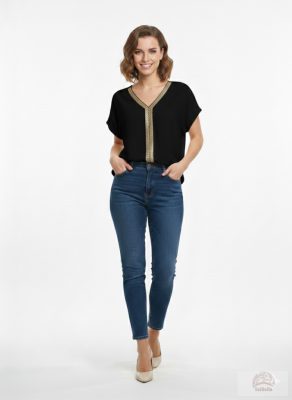 Pomodoro Lurex Trim V-nyakú Blúz – Az időtlen elegancia. Kiárusítás!! 50% árengedmény!