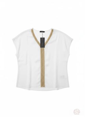 • Pomodoro Lurex Trim V-nyakú Blúz – Az időtlen elegancia. Kiárusítás!! 50% árengedmény!