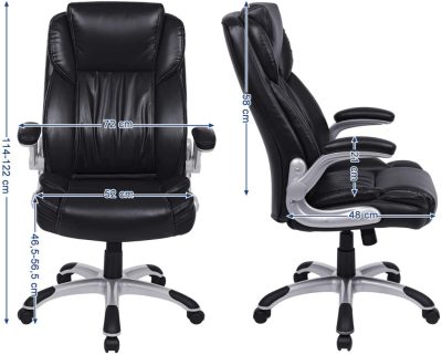 Extra nagy irodai szék, magas háttámlájú PU vezetői szék vastag üléssel és dönthető funkcióval, felhajtható karokkal, fekete: