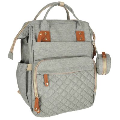 Nagyon tágas – sok rekesze és zsebe van, köztük egy hőszigetelő fóliával ellátott hely is a cumisüvegek számára . A hátizsák párnázott, így megtartja formáját. Vállpántja van, amellyel a vállára fektethetjük, és egy fogantyú, amellyel kézben hordhatjuk. A hátizsák hátoldala praktikus pelenkázóasztallá alakítható. Ezen kívül van egy USB-portja a telefon powerbankon keresztüli töltéséhez.