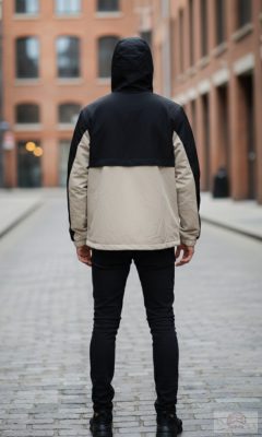 Állítható kapucni húzózsinórral a szél elleni védelemért.