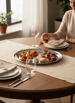 Nem egyszemélyes tálca, de nem is nagyrendezvényes méret. Akkor működik igazán, ha kisebb társaságnak, több adagban szeretnél kínálni.