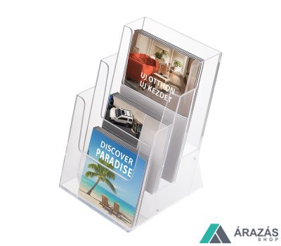 Prospektustartó A5 méret 3 rekeszes asztali szórólaptartó