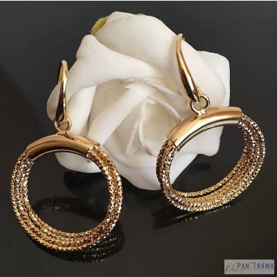 Sárga arany színű különleges karika fülbevaló.Rose aranyban is kapható! Plüss tasakban szállítjuk.Ajándéknak is tökéletes darab.