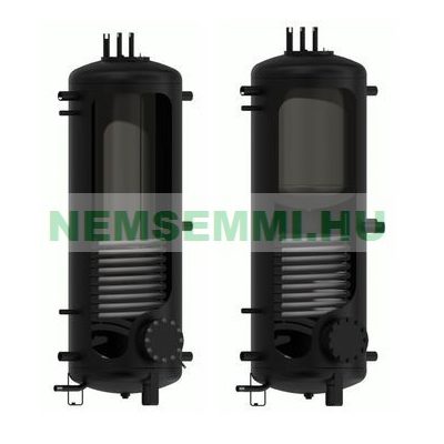 Puffer tároló hőcserélő nélkül, de a tartály belsejébe beépített zománcozott használati melegvíz tárolóval szigeteléssel.