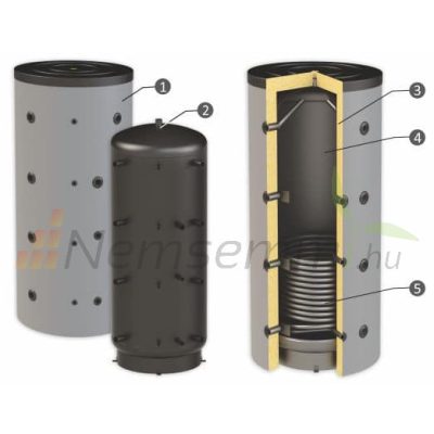 • Puffertartály - 1 hőcserélővel 500 literes tároló, speciálisan SAROKBA IS HELYEZHETŐ, melegvíz tárolás céljára.