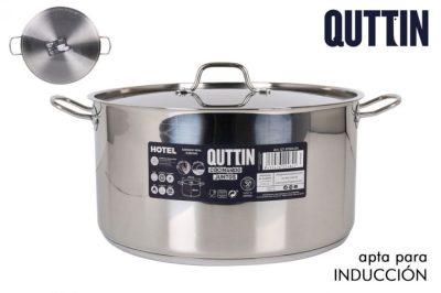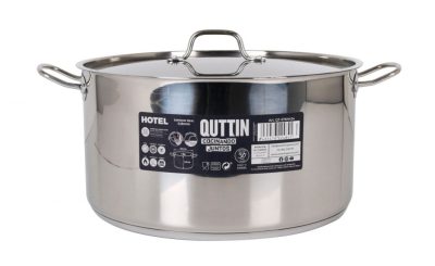 A Quttin Hotel magas lábas fedővel 16 literes egy 34 cm átmérőjű, magas falú rozsdamentes acél edény, amely a legnagyobb mennyiségek elkészítésére is képes. 18/10-es rozsdamentes acélból készült, vastag szendvics alja kiváló hőeloszlást biztosít, és minden tűzhelytípuson – beleértve az indukciót is – használható.
