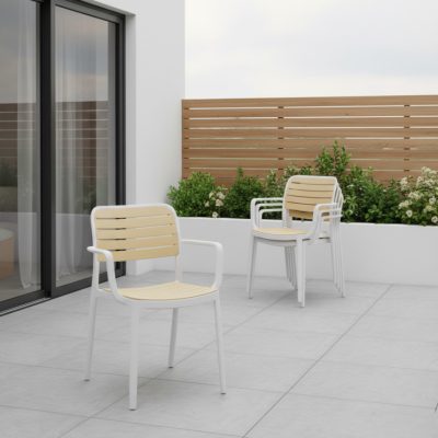 A KARDOS TYP 2 rakásolható szék a tökéletes választás, ha praktikus és helytakarékos megoldást keres kertjébe. A fehér és bézs színek harmonikus kombinációja bármilyen kültéri környezethez illeszkedik. Az időjárásálló anyagok biztosítják a szék tartósságát, így hosszú távon élvezheti kényelmét.
