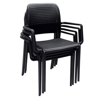 A DENTON NEW rakásolható szék ideális választás minden szabadtéri térhez, legyen az kert, terasz vagy erkély. Modern, fekete kivitelének köszönhetően könnyedén illeszkedik bármilyen környezetbe, miközben a rakásolható kialakításnak hála helytakarékosan tárolható. Tartós anyagának köszönhetően ellenáll az időjárás viszontagságainak, biztosítva a hosszú élettartamot.