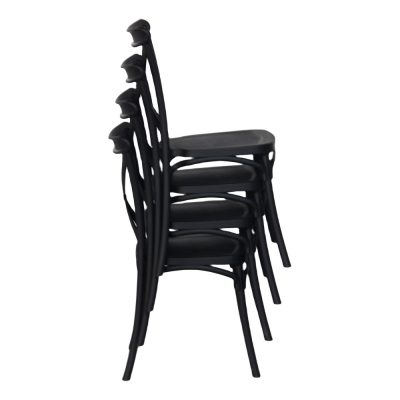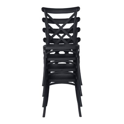 Anyag: műanyag Szín: fekete Méretek (SzxMéxMa): 50x47x90 cm Ülés magassága: 46 cm Ülés mélysége: 43 cm Ülés szélessége: 43 cm Háttámla magassága: 47 cm Háttámla szélessége: 46 cm Teherbírás: 100 kg Súly: 4,25 kg Rakásolható Alkalmas kültérre és beltérre egyaránt Egészben szállítva