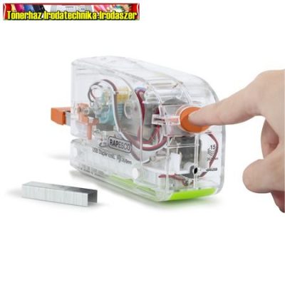 • RAPESCO 626EL átlátszó elemes tűzőgép, 26/6, 15 lap, műanyag, USB töltővel