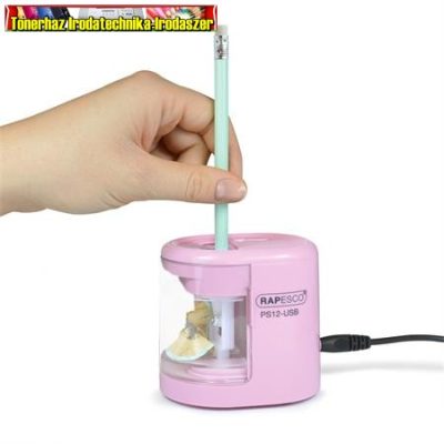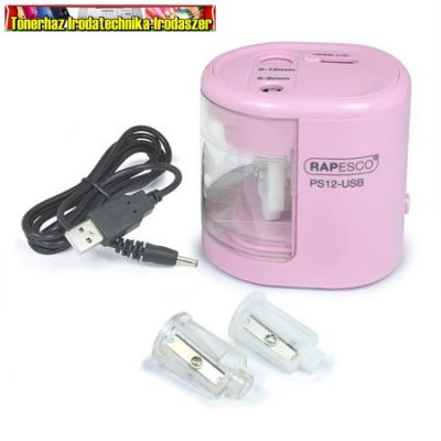 • RAPESCO PS12-USB Hegyező, kétlyukú, asztali, elemes, USB töltővel, 3 színben