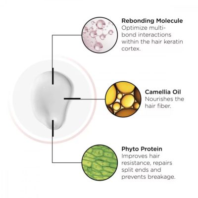 - Többfunkciós, könnyű vegán formula, amely Rebonding (kötésújjáépítő) molekulát, fitoproteint és kaméliaolajat tartalmaz