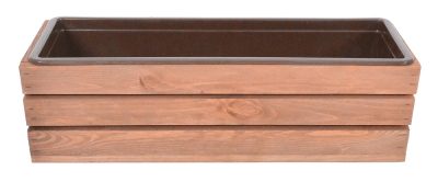 A fa szerkezete gondosan megmunkált, felülete pedig barna árnyalatú, időjárásálló lazúrral van kezelve. Ez a felületkezelés kiemeli a borovi fa természetes erezetét, miközben megvédi az anyagot az időjárás viszontagságaitól, így a virágláda hosszabb élettartamot biztosít.