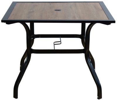 Rojaplast ZWT-194 fém kerti asztal – fekete, fa hatású Polywood asztallappal