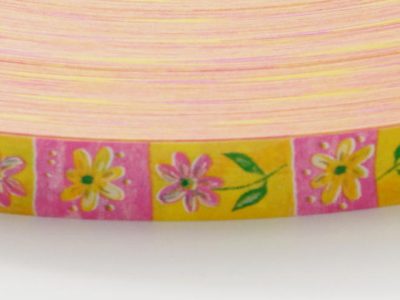• Rózsaszín-sárga virágos szalag 19 mm széles