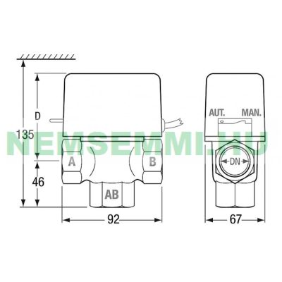• Rugós visszahúzású háromjáratú motoros szelep 1" KK külső menet zónaszelep háromutas keverőszelep 230V Feszültségre vált, hiányában visszaáll magától.