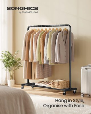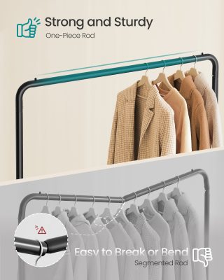 • Robusztus és erős:A prémium acélból készült ruhatartó összesen 50 kg-ot képes elbírni, így bátran akaszthatja rá a nehéz téli kabátokat. Az ipari minőségű kerekek erősebbek és tartósabbak a hagyományos változatoknál.