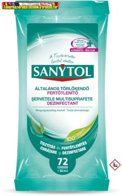 SANYTOL Fertőtlenítő felülettisztító törlőkendő, 36 db/cs (36db maxi (72db normál))