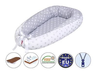 - Kiságyban betétként. Az újszülött gyerekeknek nagy és tágas a kiságy, ezért sokkal biztonságosabban érzik magukat a babafészekben, mivel körbeöleli őket.
