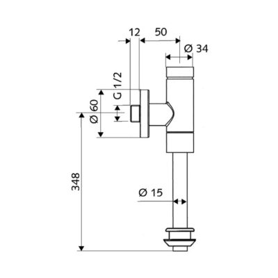 • SCHELL Basic piszoár öblítő szelep, nyomógomb vezérlés, takaró harang csatlakozás, 1/2"