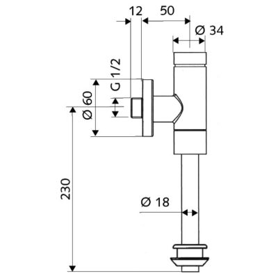 SCHELL SCHELLOMAT Basic piszoár öblítő szelep, nyomógomb vezérlés, gumi csatlakozás, 1/2"