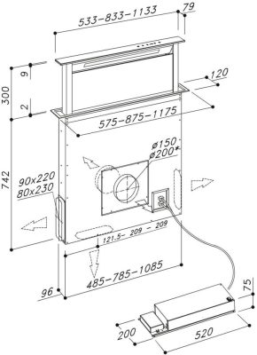 • Sirius - Páraelszívó S-DD2/L EM 90 cm LED inox motor nélkül