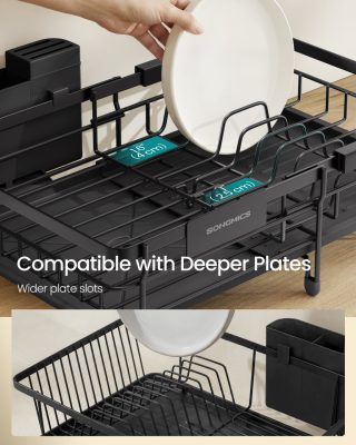 • SONGMICS edényszárító állvány, kihúzható mosogató szárító, 360° vízelvezetés, tintafekete