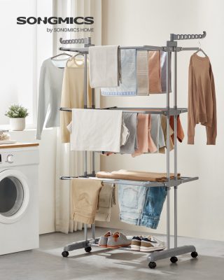 • SONGMICS gurulós ruhaszárító, 4 szintes, összecsukható, rozsdamentes acél
