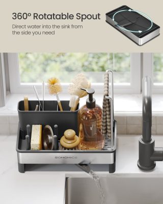SONGMICS mosogató rendező, konyhai rendszerező szivacstartóval, tároló keféknek, törlőkendőknek és szappannak, rozsdamentes acél, helytakarékos, forgatható kifolyóval, éjfekete és ezüst