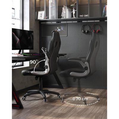 • Lehajtható karfa a helytakarékosság érdekében: Végre befejezte a munkát!A jelentés elkészült, a tervezés elkészült, és a főnöke boldog.Hajtsa le a szék karfáját, és csúsztassa az íróasztal alá, hogy helyet takarítson meg...