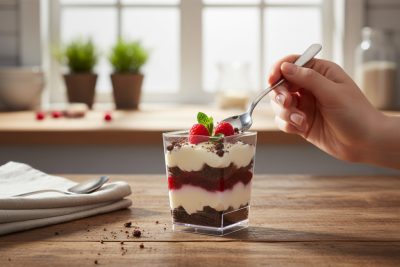Modern desszert tálalás négyzet formában