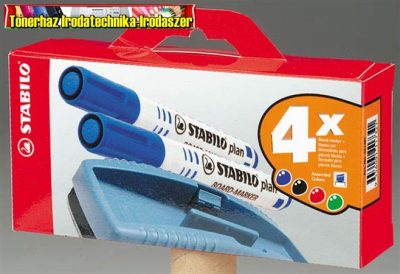 STABILO Plan Táblamarker készlet, 2,5-3,5 mm, kúpos, szivaccsal, , 4 különböző szín