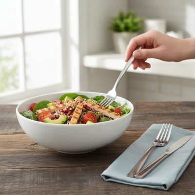 A tál high alumina porcelánból készül, amely a hagyományos porcelánnál nagyobb szilárdságot, kopásállóságot és hőtűrést biztosít. Ez az anyagválasztás nem dizájnfogás, hanem tudatos döntés: a tál jól bírja a mindennapi használatot, a mosogatógépet és a hőmérséklet-ingadozást is.