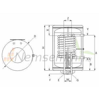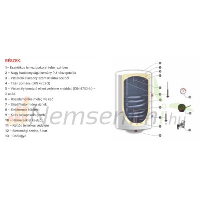 • SunSystem 100l indirekt tároló 1 hőcserélős MB típusú bojler balos bekötés + nagy teljesítményű 2 kW fűtőbetét, jobbos. HMV tároló 1 hőcserélő bojler napkollektor mellé