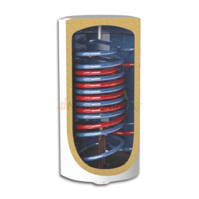 A nagy hatékonyságú, falra szerelhető, hőcserélővel ellátott, elektromos fűtőbetéttel kiegészített vízmelegítő, ami bal oldali bekötésű fűtőspirált tartalmaz.