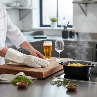 Sütőkesztyű pár, pamut, 40 cm, hőálló 350 °C-ig kiváló minőségű, ideális professzionális és otthoni használatra egyaránt.